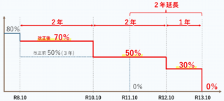 もともとは、最初の3年間が8割控除、その後3年間が5割控除というルールでしたが、今回の改正でさらに緩和されました。